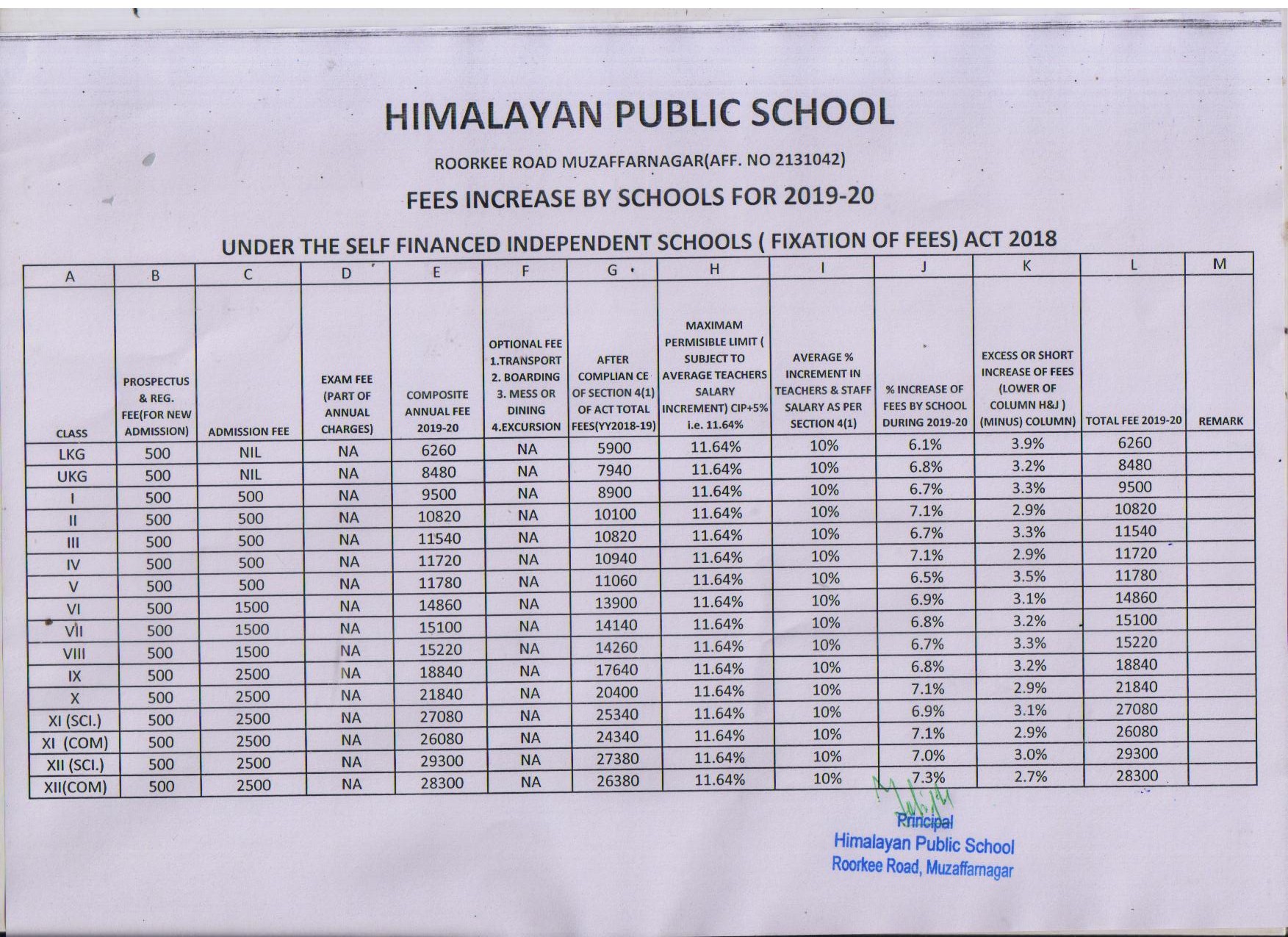 FEE DETAIL 2019-20